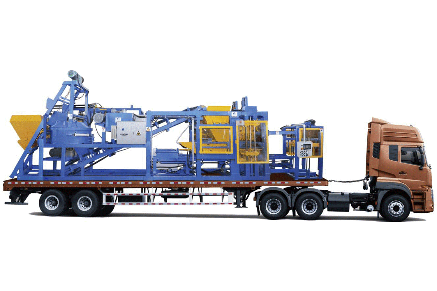 🚛 QT6-15 – toàn bộ dây chuyền sản xuất gạch bê tông được tích hợp trên một xe tải hoặc container di động, cho phép bạn sản xuất ngay tại bãi thải rắn, khu công nghiệp hoặc khu thi công mà không cần xây dựng nhà máy cố định.