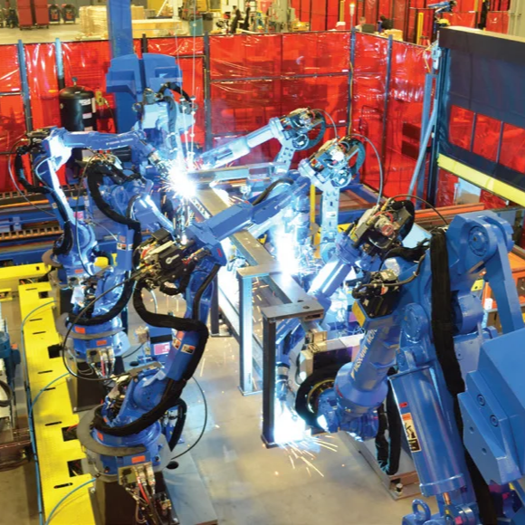 🚗 Ngành sản xuất thiết bị và ô tô: Robot thực hiện các công đoạn hàn và hoàn thiện linh kiện kim loại.