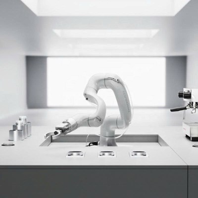 Nhờ đó, robot có thể hoạt động trong khu vực bếp mà không cần hàng rào an toàn lớn như robot công nghiệp truyền thống.