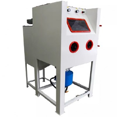 Tủ phun cát được thiết kế đặc biệt với một bình điều áp chứa khí nén đẩy và gia tốc hạt cát đến vòi phun cát thông qua một van xả, sau đó phun cát lên bề mặt vật liệu phôi.