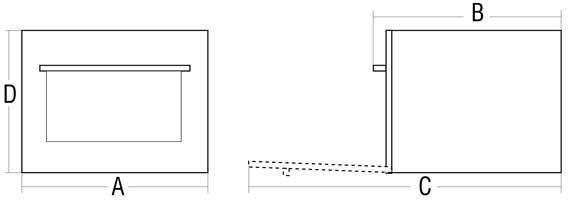 - Kích thước lỗ (LxDxH ): 565 x 540 x 450 mm