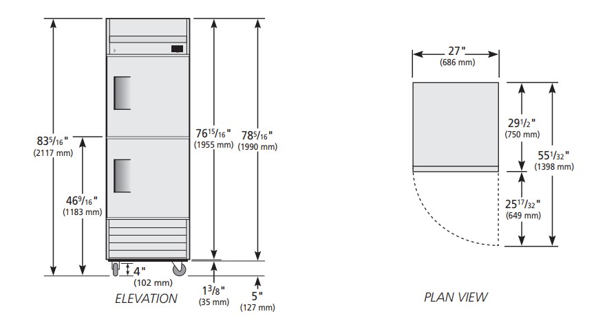 Thông số kỹ thuật Tủ đông bằng thép không gỉ có cửa xoay nửa chắc chắn Reach-In TRUE TS-23F-2-HC