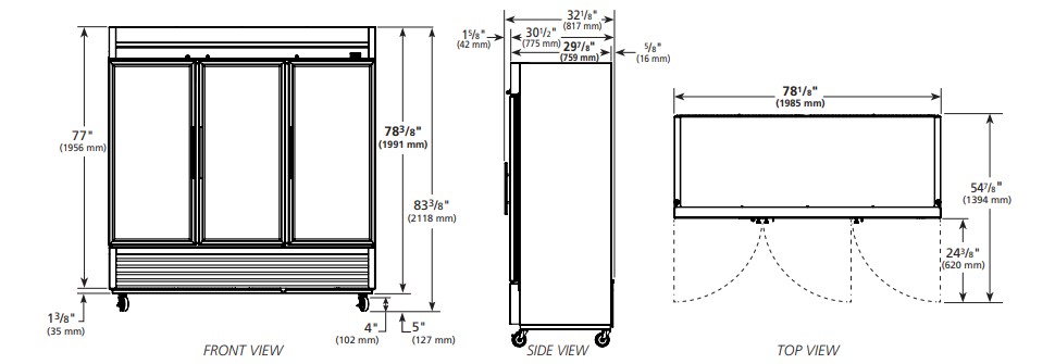 Thông số kỹ thuật Tủ đông bằng thép không gỉ cửa xoay kính Reach-In TRUE TS-72FG-HC~FGD01