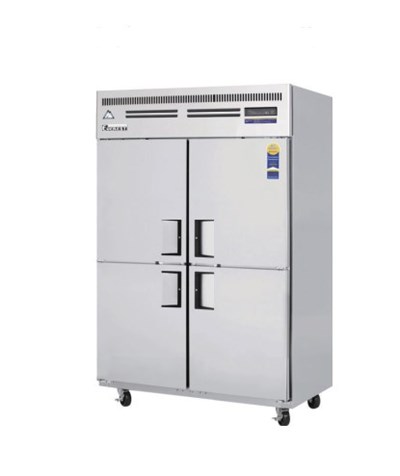Tủ đông mát đứng 4 cánh inox – 2 ngăn mát + 2 ngăn đông, dung tích lớn, làm lạnh sâu, thiết kế chuẩn bếp công nghiệp, sẵn sàng hoạt động 24/7 không gián đoạn.