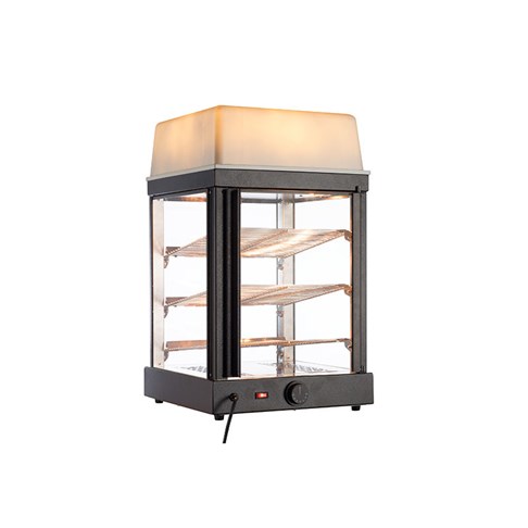 Tủ hâm nóng trưng bày mini là lựa chọn hoàn hảo để bảo quản bánh quy, đồ ăn nhẹ, bánh mì được gói hoặc đóng hộp, hoặc các sản phẩm không ẩm khác. Sự luân chuyển của không khí nóng trong tủ trưng bày ấm siêu tốc giúp thực phẩm luôn ở trong một phạm vi nhiệt độ an toàn. Thể tích tủ hâm nóng nhỏ, không chiếm nhiều diện tích và có thể trưng bày thực phẩm vào bữa sáng, bữa trưa và bữa tối.
