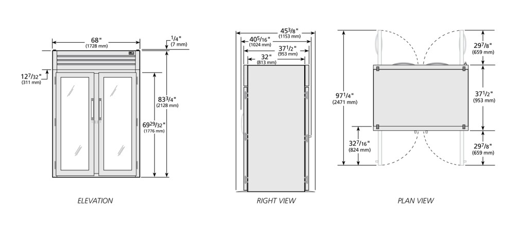 Thông số kỹ thuật Tủ lạnh cửa xoay phía trước bằng kính/cửa xoay phía sau chắc chắn TRUE STG2RRT-2G-2S