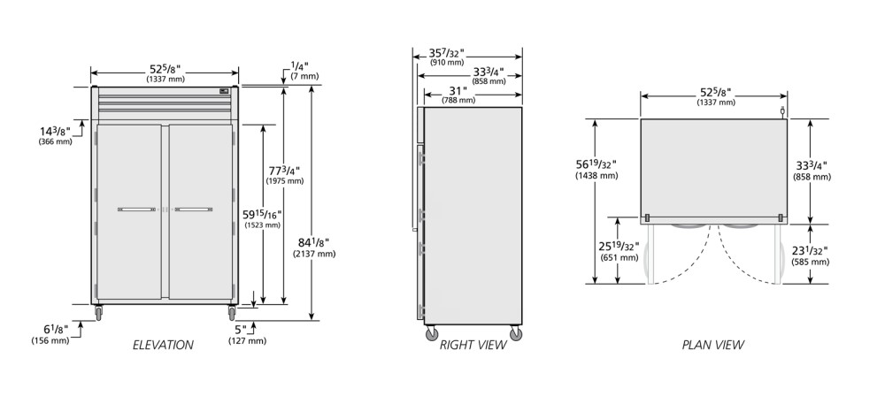 Thông số kỹ thuật Tủ sưởi ấm cửa xoay đặc Reach-In TRUE STA2H-2S