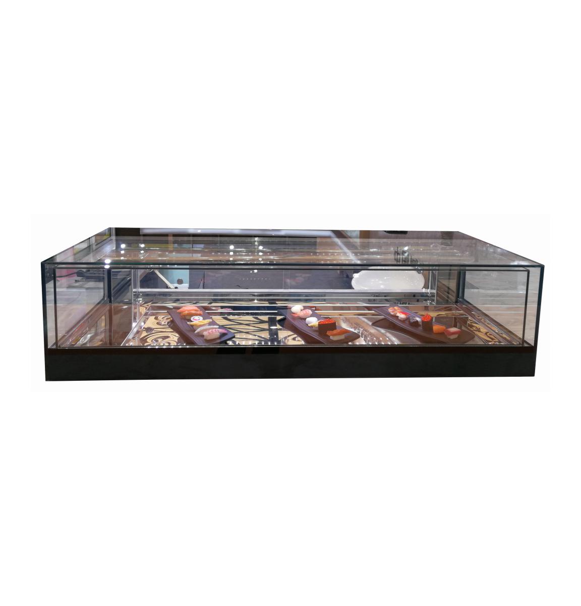 - Mặt kính trưng bày vuông vức đẹp mắt, trong suốt được làm từ kính cường lực cao cấp, đem lại vẻ đẹp trang nhã, giúp thực khách dễ dàng quan sát và lựa chọn những miếng sushi thơm ngon, tươi mát được trưng bày bên trong.