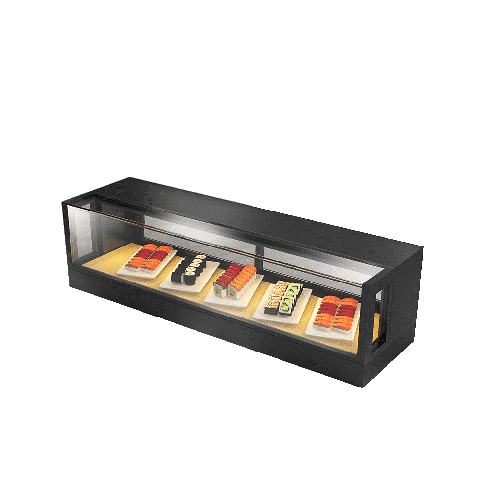 🍣 Nhà hàng sushi – sashimi Nhật Bản: Trưng bày sushi, sashimi và set ăn cao cấp với khả năng giữ độ tươi tối ưu, giúp tăng trải nghiệm thị giác và chất lượng phục vụ tại quầy bar sushi.