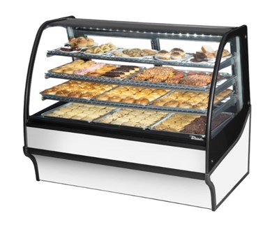 Tủ trưng bày "khô" của True kết hợp khả năng bán hàng khối lượng lớn, hiệu quả với mặt trước bằng kính cong trang nhã để trưng bày tinh xảo các món tráng miệng và bánh ngọt cao cấp.