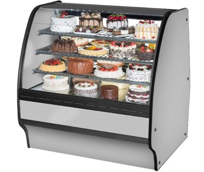 Tủ trưng bày lạnh bằng kính của True kết hợp khả năng trưng bày hiệu quả, khối lượng lớn và khả năng làm lạnh vượt trội với mặt kính cong thanh lịch để trưng bày tinh tế các loại bánh ngọt, món tráng miệng và đồ ăn nhẹ cao cấp.
