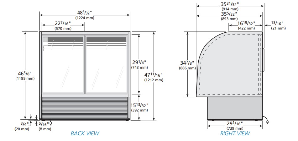 Thông số kỹ thuật Tủ trưng bày kính cong TRUE TCGG-48-HC-LD