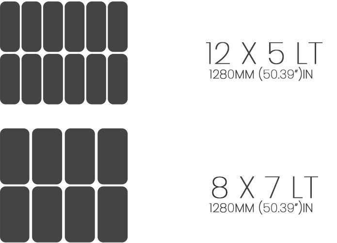 Chiều dài (U): 1280 / 1600 / 1790 / 2000 / 2350 mm