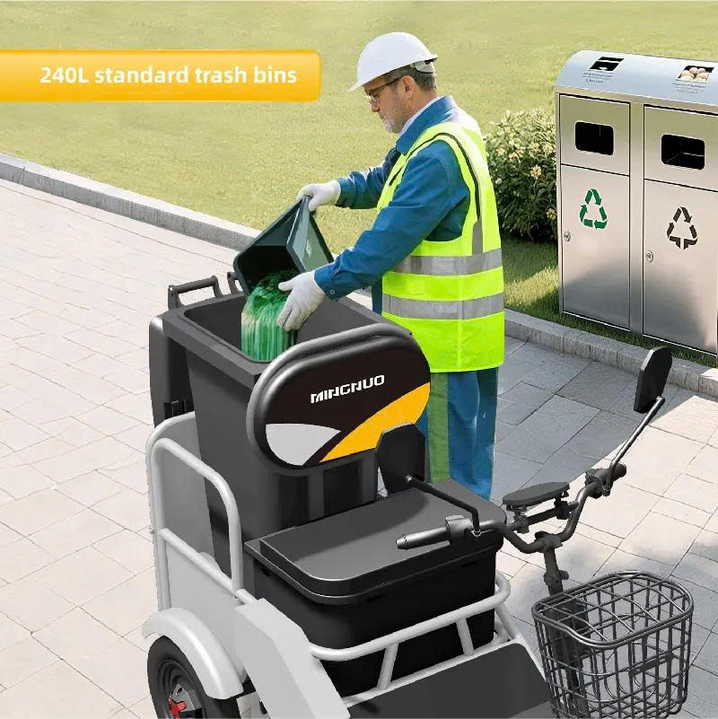- 🟢 Thùng rác 120 L, tùy chọn 240 L – quét và thu gom rác trên cùng một xe, tăng hiệu quả công việc.