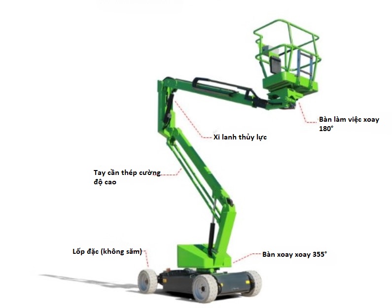 - Chiều cao nền làm việc tối đa: 11,5 m