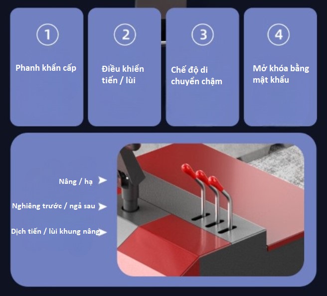 - Dịch tiến / lùi khung nâng