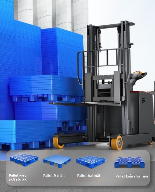 - 🔹 Không kén pallet, phù hợp đa dạng hàng hóa: pallet gỗ, nhựa, kim loại…