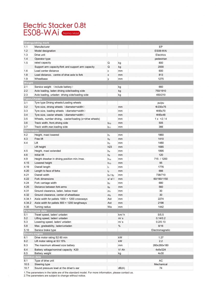 • Xe nâng điện tay cao Pallet đôi ES08-WAi