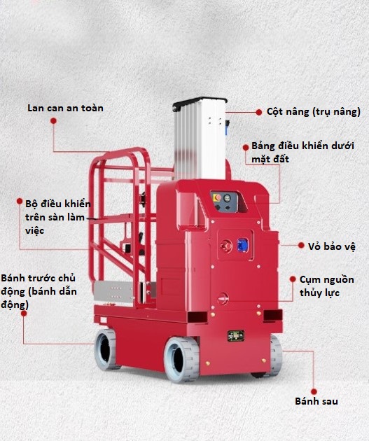 ✅ XE NÂNG NGƯỜI DI ĐỘNG CHẠY ĐIỆN THỦY LỰC – TỰ HÀNH MỘT TRỤ