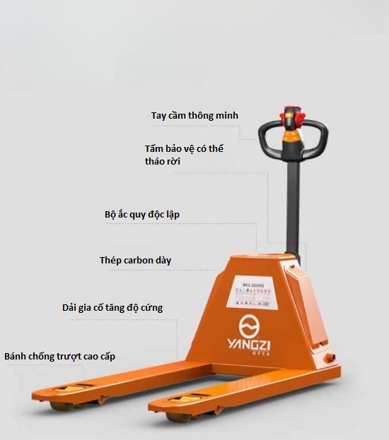 Hãy để Xe nâng pallet thủy lực điện Yangzi YZ-NPT trở thành trợ thủ đắc lực, giúp bạn nâng hạ hàng hóa dễ dàng, vận hành an toàn và tiết kiệm tối đa chi phí nhân công.