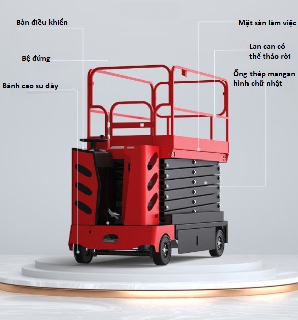 - Người vận hành có thể tự điều khiển di chuyển và nâng hạ sàn, không phụ thuộc vào người khác.