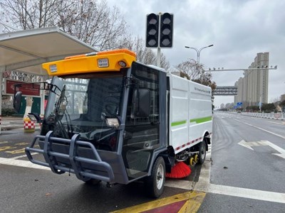 ⚡ Xe hoạt động hoàn toàn bằng điện, giúp giảm khí thải và tiếng ồn so với các dòng xe quét rác chạy bằng nhiên liệu.