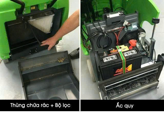 - Đẩy xe về phía trước, chổi quét và hệ thống hút bụi sẽ hoạt động đồng thời.