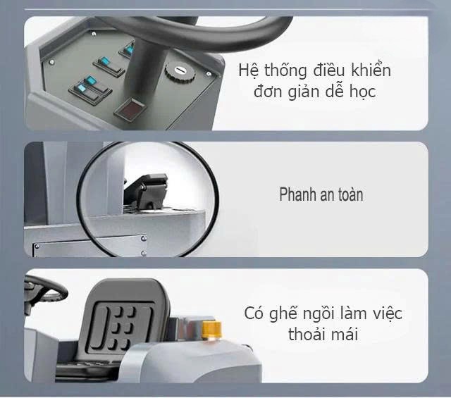 - 🪑 Khoang ngồi lái rộng rãi: Người dùng thoải mái, dễ quan sát toàn bộ khu vực vệ sinh, tối ưu thao tác.