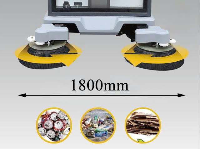 - 4 chổi bên (2 chổi 700mm và 2 chổi 500mm) giúp mở rộng phạm vi làm việc lên tới 1900mm, quét sạch sát mép tường, góc cạnh, vỉa hè.