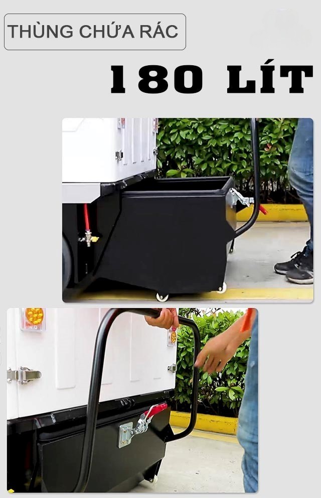 - 🛢 Thùng chứa rác 180L: Bạn có thể vệ sinh liên tục các không gian rộng mà không phải dừng lại để đổ rác, tiết kiệm thời gian và tăng hiệu quả làm việc.