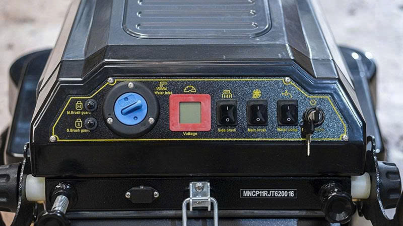 💡 Hệ thống bảng điều khiển được bố trí ngay trên thân xe, gồm các nút bật/tắt, điều chỉnh tốc độ, phun nước, giúp người vận hành kiểm soát dễ dàng, chính xác.