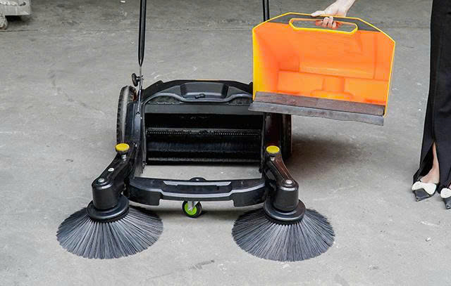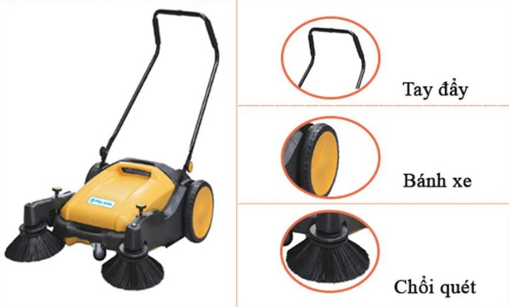 - 🚶 Người dùng chỉ cần đẩy xe về phía trước, các chổi quay tự động gom rác vào thùng chứa.