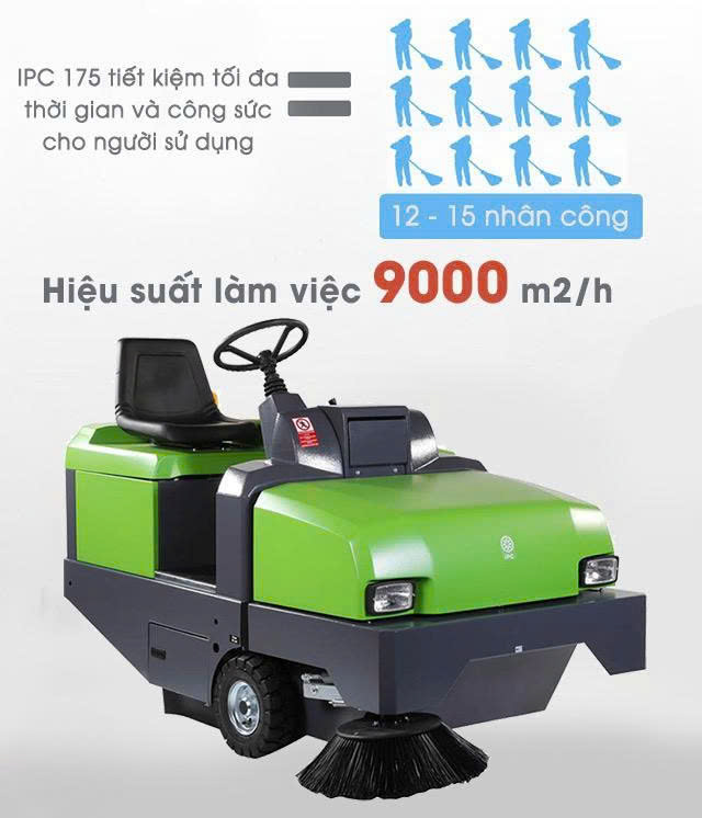 Với thiết kế ngồi lái hiện đại, hệ thống lọc bụi cao cấp và công suất làm việc ấn tượng, IPC 175 không chỉ giúp bạn quét sạch rác mà còn bảo vệ môi trường xung quanh, tiết kiệm chi phí và nâng cao hiệu quả công việc.