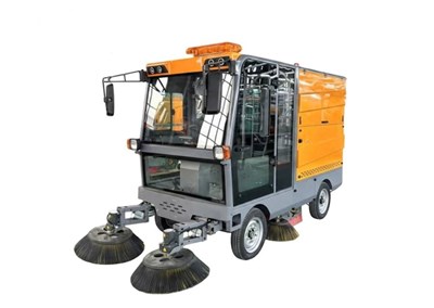 🧹 Xe được trang bị 4 chổi bên kết hợp chổi lăn trung tâm, giúp gom rác từ nhiều phía vào khu vực hút.
