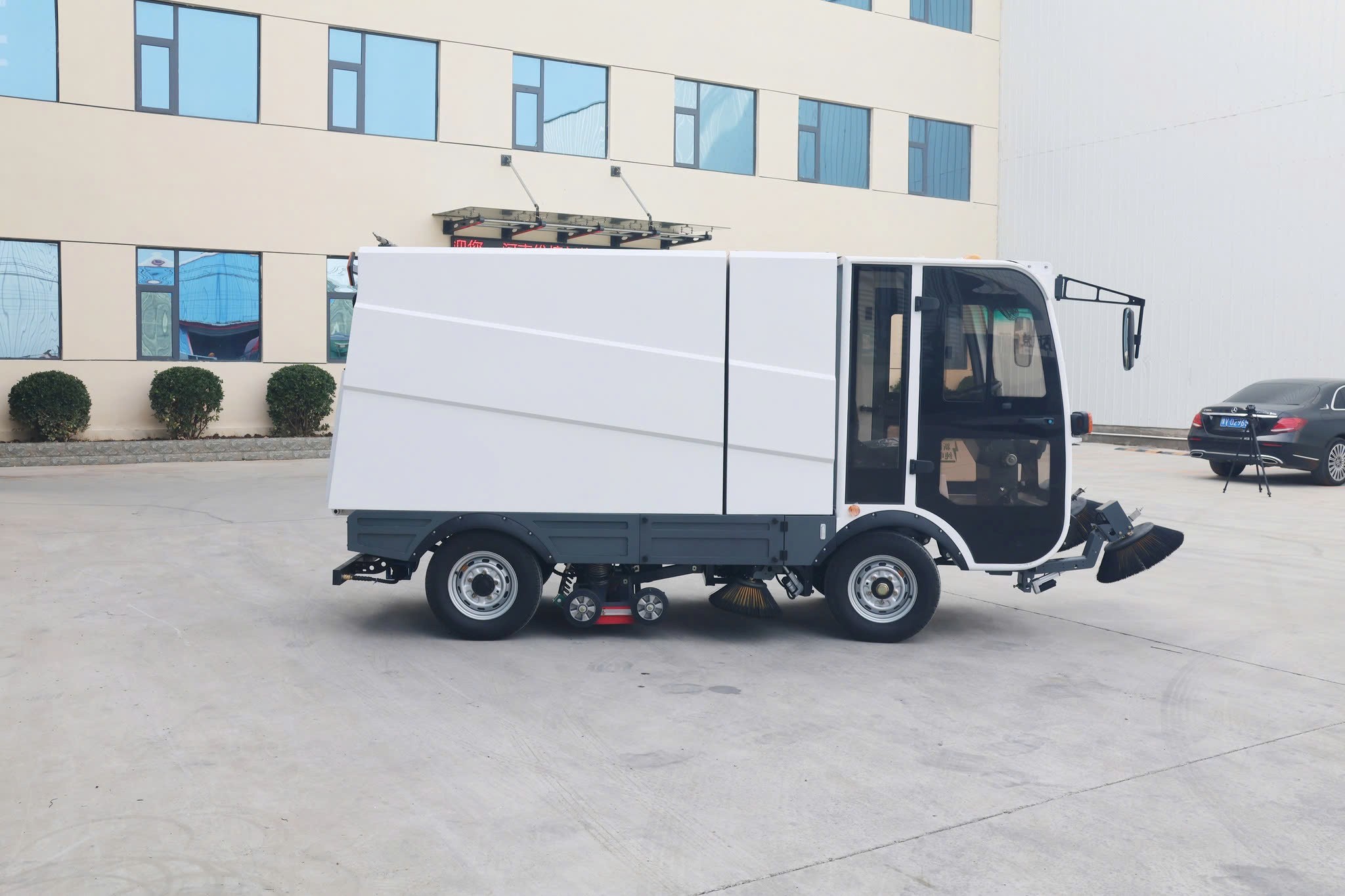 🧹 Xe được trang bị hệ thống chổi quét trước và chổi trung tâm, giúp gom rác hiệu quả từ nhiều hướng vào khu vực hút.