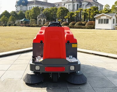 🧹 Xe được trang bị chổi quét chính kết hợp hai chổi bên, giúp gom rác và bụi bẩn từ nhiều hướng vào khu vực hút trung tâm.