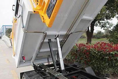 - 🔹 Cửa sau thủy lực: Mở hoàn toàn lên đến nóc xe, cho phép đổ rác cùng lúc, không để lại cặn rác.